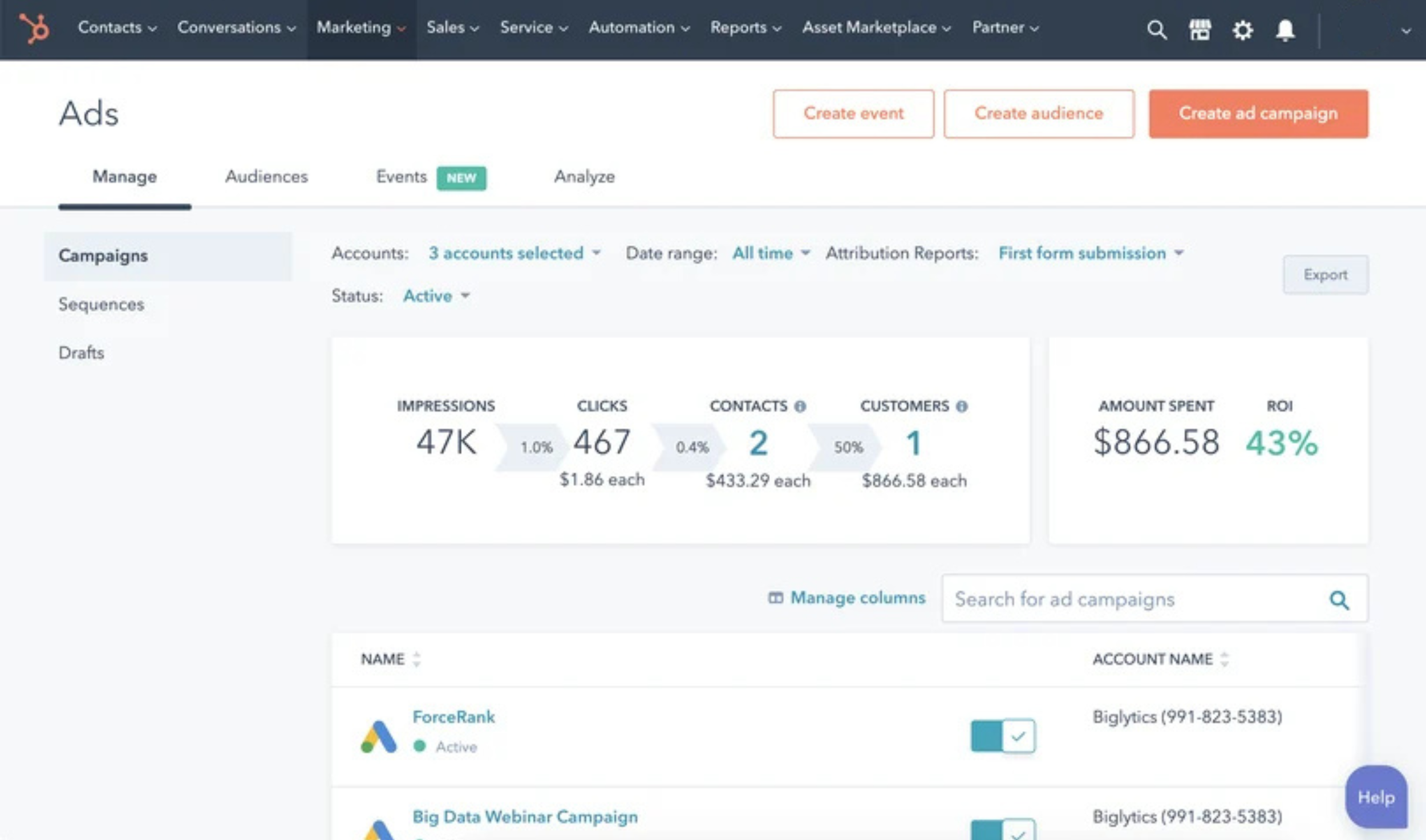 HubSpot ties campaign costs directly to lead quality and conversion data, giving you a crystal-clear view of which campaigns actually deliver profit.